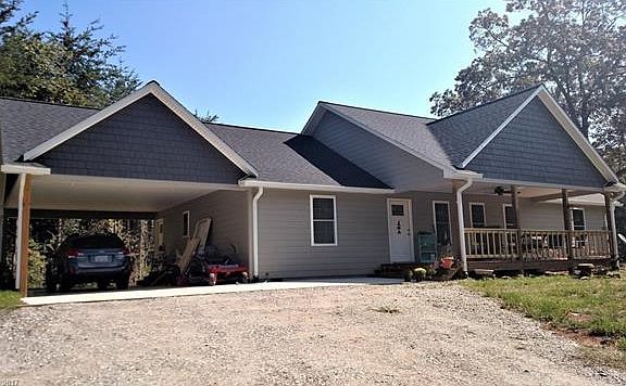 Only 3 months new. Open Floor Plan with Cathedral Ceilings. Nice hardwood flooring. This is a 3 Bedroom - Master bedroom large with walk-in closet. Master bathroom has double sinks, closet, Shower-Tub. Split Floor Plan with 2 bedrooms and bath. Siding is Hardboard for easy maintenance and covered porch. Carport 2 Car. Outbuilding with electrical. Located in Webster. Close to Shopping, WCU, SCU, walking trails.