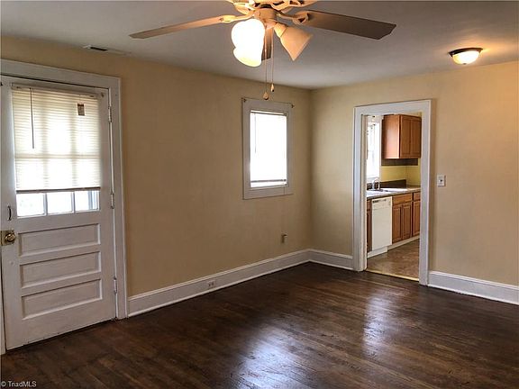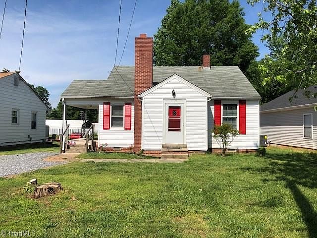 Charming home in the Heart of Kernersville. Watch the July 4th fireworks from your own yard. Newer cabinets and countertops, spacious living room and kitchen, newer vinyl siding, hardwoods in living room and bedrooms, updated bathroom. Nice level yard with fenced area in back and storage shed. Refrigerator, washer and dryer are included. Sold As-Is.