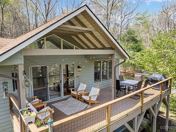The search is over! You will not be disappointed in this Swannanoa Beauty. This immaculate elevated ranch has so much to offer with bold mountain views, 2 car garage, 2 car carport, hot tub, fire pit, and main level living with vaulted ceilings and hardwood floors. The primary bedroom is also on the main floor with updated on- suite primary bathroom with tile shower, and 4 giant closets. Relax in your open concept living room in front of the gas vented fireplace with built-in cherry shelves & cabinets looking out on your own mountain view. The updated kitchen features stainless steel appliances and granite countertops. Enjoy your oversized deck with both covered and uncovered areas for sitting, eating, grilling, or just taking in the views. Downstairs you'll find another bedroom and bonus room, 2nd living room and kitchenette perfect for family or visitors. Bonus features: workshop with power, storage shed, & invisible fence. Only 12 Minutes to Black Mtn & 15 mins to Asheville!