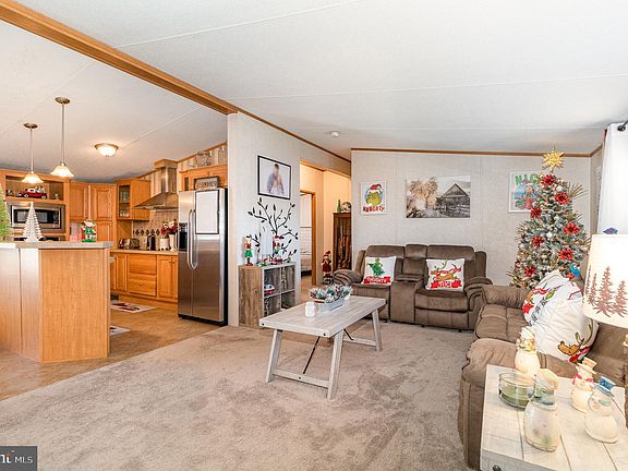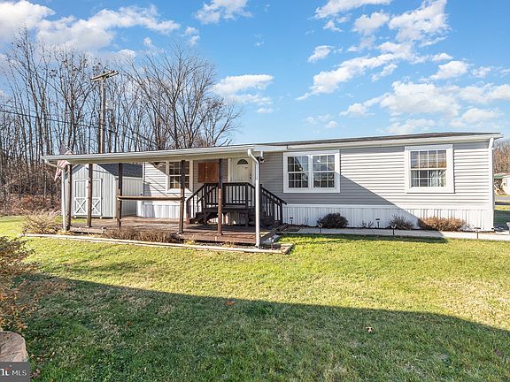 Do you enjoy a gorgeous country setting? Well, this home is for you. Single level living. 3 bedrooms, 2 baths, well maintained manufactured home in mobile home park. New carpet throughout. Open floor plan, eat in kitchen with built in oven and microwave, lots of cabinets, sink and dishwasher in center island. Laundry room is just off the kitchen. Primary bedroom with bath on one end of home and 2 bedrooms and full bath on other end. Wide open living room opens to kitchen. Porch deck for relaxing with a beverage after a long day. Huge shed for storage and toys. Well maintained yard with fire pit backs up to woods. Close to parks, creeks, state game lands, stores, and quick access to highways.