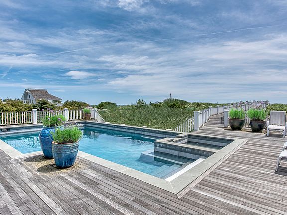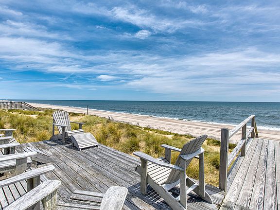 Your perfect summer getaway awaits on the ocean in Quogue. Boasting ocean and unobstructed bay views, this extraordinary home offers every amenity to make your Hamptons experience unforgettable. Eight bedrooms all en-suite including one bunk room with six bunk beds. Large kitchen features a six+ burner stove, two ovens, two sinks, two refrigerators, four dishwashers, warming drawer and wine cabinet. Spacious living area with over sized gas fireplace. Additional fireplaces can be found in the den and master bedroom. Game room including a pool table, video games and a second kitchen. Laundry on both floors as well as an elevator. Outside relax by the oceanside gunite pool with spa or take the elevated walkway to the dune deck, just steps away from your very own private beach. The rooftop deck offers another place to take in the panoramic water views. The beautifully landscaped grounds include a tennis court, three car garage, ample overflow parking and 100' of ocean frontage.
