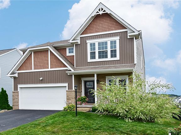 Welcome to this immaculately maintained 4 Bedroom home located in Dutch Creek Estates with very easy and quick access to I-79, just south of the quaint town of Zelienople. Over 2500 square feet of living space plus a fully finished basement with walk out to the back yard. Enjoy the bright, open floor plan and included Sun Room with a lovely view, perfect for watching the sun set over the hills! Cook to your heart's content in the gorgeous Chef's Kitchen with deluxe cabinetry, large island, granite counters, built in Stainless Steel Oven/Microwave and gas cooktop. Additional features include a Deluxe Master Bath Room with large walk in closet, conveniently located large 2nd floor laundry room, covered front porch, crown moulding and a patio with fire pit. Second floor also has 3 additional bedrooms with huge closets and full bath. The Lower level is finished with a full bath with additional room. Easy access to Route 19, I79 and shopping complex. Brand new carpet on second floor.