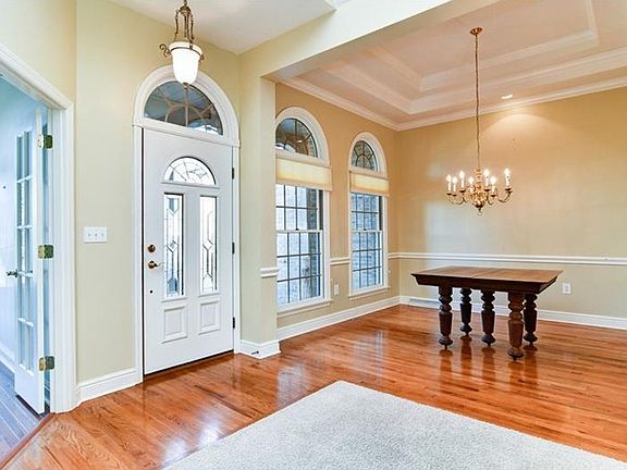 Stunning ranch style home with 3 car attached garage and four sided brick. Situated on nearly 3/4 acre in the charming community of Nottingham Forest. Walk into the level entry and you are greeted by a spacious family room with vaulted ceiling and gorgeous stone fireplace. The main level also features a den with new hardwood flooring, dining room with tray ceiling, large eat in kitchen, master bedroom with sitting room and spacious master bathroom, and two guest bedrooms that share a Jack and Jill bathroom. The screened in back deck overlooks the gorgeous yard that backs to woods. The finished walk out basement features a game room, bar with appliances, full bathroom, billiards room, laundry, 2 storage rooms, and numerous windows for natural light. Professionally landscaped and great curb appeal. A brand new furnace and AC unit were just installed and the roof was replaced in 2018!!