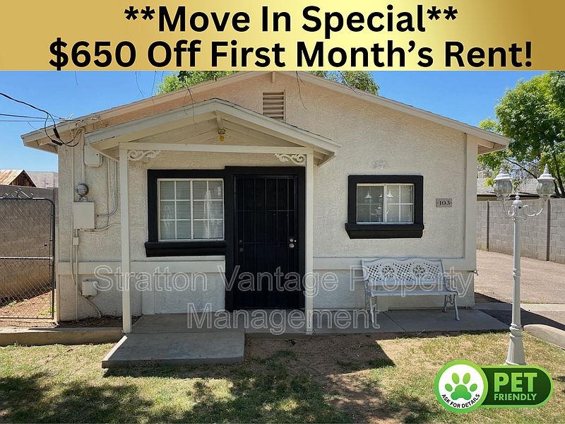**Move in Special- $650 Off First Month's Rent You'll love this completely remodeled 2 bedroom 1 bath home in the Mesa Arts District with No HOA! Updated cabinets, countertops and appliances in the kitchen. Located conveniently at the end of the private street with 2 assigned parking spots Front yard landscaping included. Close to schools, parks, shopping, dining, entertainment, freeways and MORE! Schedule your showing TODAY! *BEWARE OF SCAMS! We do not list our homes on Craigslist or Facebook Marketplace. Please contact Stratton Vantage Property Management to confirm availability and rent price* INITIAL MOVE-IN COSTS Security-Deposit - minimum is 1.25X monthly rent but not greater than 1.5X the monthly rent. (75% may be refundable) First Month Rent + 3% Processing Fee + Rental Tax where applicable + $75 Resident Benefit Package Setup Fee Lease Preparation Fee: $225 *Pets - If Applicable, a minimum Non-Refundable Pet Fee in the amount of $250 per pet is required - (Some Breed Restrictions Apply) Does Not Apply to Assistive Animals *Pets - If Applicable, the First Month of Pet Rent in the amount of $60-$80 per pet depending on type of pet(s) which includes a $30 pet administrative fee (Some Breed Restrictions Apply) - Does Not apply to Assistive Animals RECURRING MONTHLY COSTS Rent + 3% Processing Fee + Rental Tax (where applicable) $75 Resident Benefit Package - (includes renters' insurance, credit reporting, rewards program and more) *Pet(s) If Applicable, $60-$80 per pet, which includes a $30 pet administrative fee Does Not apply to Assistive Animals *BEFORE YOU APPLY TO RENT THIS PROPERTY, PLEASE VISIT OUR WEBSITE TO REVIEW OUR RENTAL QUALIFICATIONS AND LEGAL DISCLOSURES ADDITIONAL DISCLOSURES Brewer & Stratton Property Management LLC is an Arizona Limited Liability Company dba Stratton Vantage Property Management. 12-month minimum lease term, (longer lease terms may be negotiated). Stratton Vantage Property Management does business in accordance with the Fair Housing Act. Stratton Vantage Property Management does not discriminate against any person based on race, color, religion, sex, handicap, familial status, or national origin. The information contained in this ad is accurate to the best of our knowledge. Stratton Vantage Property Management is not responsible for any error or omission in the wording or content of this information. Amenities: fridge, range/oven, microwave, dishwasher, 2 parking spots
