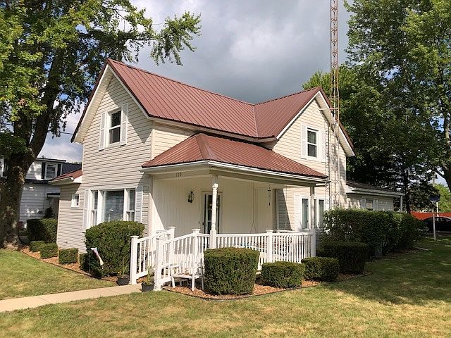 Fantastic 4 Bed, 1.5 Bath home in Pioneer Schools. Manicured lawn and landscaping. Awesome-Huge garage with electric, work bench and concrete floors. Eat-in kitchen comes with appliances and has garbage disposal. Furnace and AC is 7 years old. Metal Roof on home and garage is 1 week old. Roof on back porch is only 3 years old. Upstairs has 7 year old replacement windows. There is a 1/2 Bath that can be converted back to a full bath. Alley way and drive way is paved to garage. Nice Sidewalks.