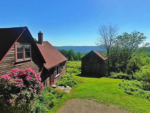 With stunning views into New Hampshire showcasing Mt. Monadnock, this one-of-kind property is surrounded on all four sides by conservation land. The "Newcomb Homestead" has been maintained as a nature sanctuary with more than 125 species of birds identified and home to one of the oldest lilac bushes in Franklin County. For sale for the first time in 30 years, this unique property includes a 1789 Cape-style post and beam home with 3-bedrooms and 1-bath, 2-room heated artist studio with eastern views, barn with lower level space for goats/sheep/chickens, hoop greenhouse, abundant gardens, blueberries and fruit trees, and medicinal herbs. Noted photographer Masha Arms and her husband, William, collaborated on writing the History of Leyden (1959) while living on the property. Some original doors remain and a hand pump still serves the kitchen. Updates include windows, exterior doors, and in 2019, a Bosch propane boiler, hot water and well tanks. A privilege to visit, a treasure to own.