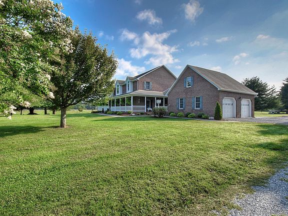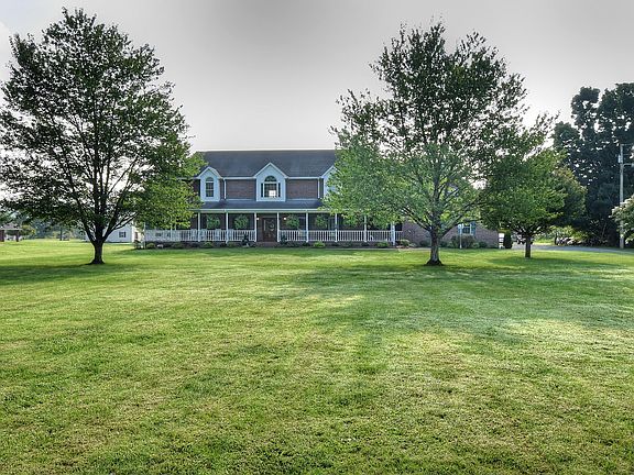 This custom built stately two story brick home sits on a gorgeous level 2 acre lot featuring both mountain and pasture views. The tree lined driveway prepares the way for the gorgeous setting of this home. Entering the home you are greeted by a large soaring two story foyer. Connecting from the foyer you will find a nice office with custom bookcases and a formal dining room. The two story great room features a custom brick fireplace that runs floor to ceiling and has gas logs providing the focal point of the room. The kitchen is directly off the great room and features extensive counter and cabinet space and a nice breakfast nook overlooking the backyard. You will love the space that the main level master bedroom provides that includes a large walk in closet and en-suite master bathroom with Jacuzzi tub and stand up shower. Additionally on the main level is a large sunroom area that is both heated and cooled and has tons of windows to allow for natural light. A beautiful staircase leads to the upstairs overlooking the great room. On the second level you will find four bedrooms, one which could serve as a second level master bedroom in addition to there being two full baths on this level. The two car garage is very spacious and features oversized garage doors and walk up storage space above the garage. This home boasts extensive hardwood flooring, ceramic tile, high end oak cabinetry, warm neutral colors and extensive custom moldings and trim. This all brick home features high quality all brick construction and will stand alone in what it has to offer in both size, quality and amenities in a setting that offers both privacy and convenience. All information and square footage are subject to buyer verification.