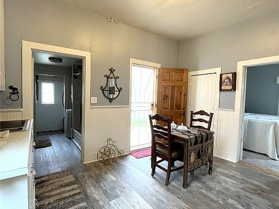 This charming cottage style house is move-in ready! Situated at the end of the street and above town, it offers privacy and top of the world views. One story living features 2 bedrooms and 1 bath. The home has been recently updated with carpeting, laminate flooring, gas stove, washer/dryer, water heater, bath vanity and tub surround, light fixtures and much more! There is also a gas fireplace in the cozy living area. Outside, the siding has been replaced recently. Enjoy the convenience of a 3 stall detached garage, covered storage, and a separate shed complete with a chicken coop! The yard is fully fenced and ready for your garden and pets. The town park is just a few minute walk from the home, and an easy walk or drive to all the downtown businesses. Lot is a spacious .21 acres! Furniture is negotiable.