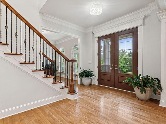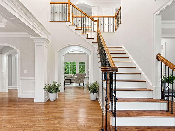 Welcome to the prestigious community of Westfall in Chapel Hill where tree-lined streets and scenic beauty define the neighborhood. This stunning 6,550 sq. ft. Custom residence offers the perfect blend of elegance, function, and privacy—all just minutes from UNC-Chapel Hill, Duke University, RTP, and RDU Airport. Situated on a 0.76-acre lot backing to serene wooded views on a Cul-de-Sac, this home features 6 spacious Bedrooms, each with its own private en-suite Bathroom, including a Main-Floor GUEST SUITE perfect for visitors. The heart of the home is the gourmet Kitchen, featuring Double Islands with seating, premium appliances, and an open layout ideal for entertaining. Additional Main-Floor highlights include a dedicated Office/Study, a Formal Dining Room, and Dual Staircases that provide both convenience and architectural charm. Soaring two-story Windows flood the living space with natural light. The luxurious Primary Suite is a true retreat with custom Closets, including a Jewelry Closet that combines style with thoughtful design. The fully finished walk-out Basement offers incredible versatility with a Theater Room, a Bonus Room with wet bar, a dishwasher and fridge, and an additional Bedroom and Bathroom—ideal for multi-generational living or entertaining guests. The Community offers a Resort-Style Pool, Cabana and so much more. With high-end finishes throughout, expansive living areas, and unbeatable proximity to world-class universities, healthcare, and tech hubs, this home is a rare find in one of Chapel Hill's most desirable communities.