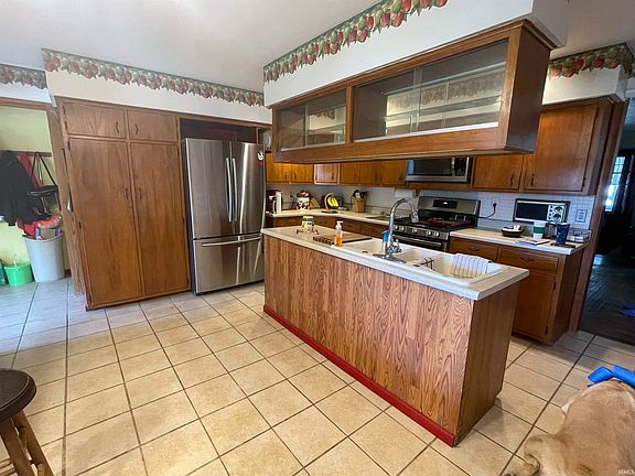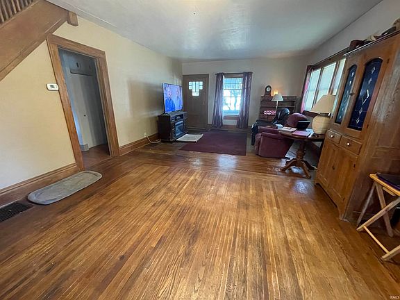 Large home on a double corner lot in beautiful Royal Center. 4 bedrooms (2 up & 2 down), 1 bathroom. Partially finished basement. Original hardwood floors. Enclosed front porch. Large kitchen with a breakfast bar. Nice walk-in tiled shower. 2 car detached garage and a large shed. Deck in the back would be perfect for patio furniture or a hot tub. Nicely landscaped with flowers, bushes and trees. Come make this house your home.