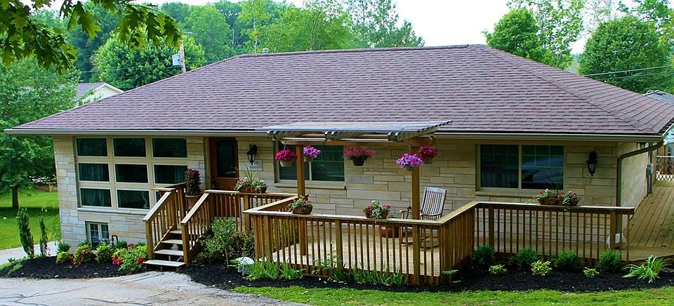 PRICE REDUCED!!!!! MIDCENTURY MODERN!!!! Gorgeous limestone ranch over a finished basement. 3 Bedroom 2.5 Bath in the established Edgewood Neighborhood. Huge remodeled kitchen with vaulted ceilings gives this home an incredible WOW factor! Floor to ceiling windows in living room with cozy fireplace surrounded by custom built-ins welcome you through the front door. Full finished lower lever offer endless entertaining possibilities and multiple large storage areas, bar that lights up, built in fish tank, not to mention a urinal in the bathroom! Hot water is on demand and with this state of the art tankless water heater. Master offers walk in closet and ensuite bathroom with double sinks. The back yard is ready for fun with the large hot tub and stylish pergola! Laundry on the main level make this home great for convenient living!