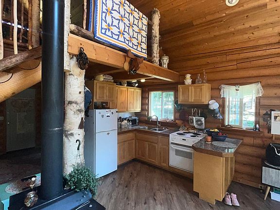 Imagine the peace and quiet in this darling log cabin in the woods. This very well built log home is just what you have been looking for with vaulted ceilings, a cozy wood stove and floor to ceiling windows that flood the home with natural light and views of the gorgeous 7.19 acres. An open floor plan offers a nicely appointed kitchen, dining area, and living room. The main level bathroom offers a little oasis in the large soaking tub and territorial views. The large loft is your master suite with lots of storage and opens to the cabin and the views. A detached shop offers a large second traditional bedroom, laundry room and tons of shop space. A large covered area for wood storage or room for the toys. A private yet usable 7.19 acres has varied terrain, mature trees and lovely landscaping around the home.