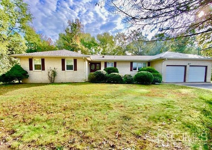 Sprawling 2488 sq ft Brick front Ranch located on private lot off country road in rural setting.double door entry-slate foyer with tray ceiling*Huge Formal Living rm and Big Dining rm with Picture window and Hardwood Floors*Family rm has Brick wall Fireplace*Spacious Eat in Kitchen-Double door Pantry, Oak cabinets*Oak Floors in all bedrms*Master has Full Bath, 2 Double closets flanking Vanity area*Full Basement*2 Car Garage with openers*Timberline Roof*All Vinyl Windows*200 amp Electric Service*Circular Driveway*This large Ranch is located across from a beautiful pasture and offers Tranquality and Privacy not far from the quaint small downtown.