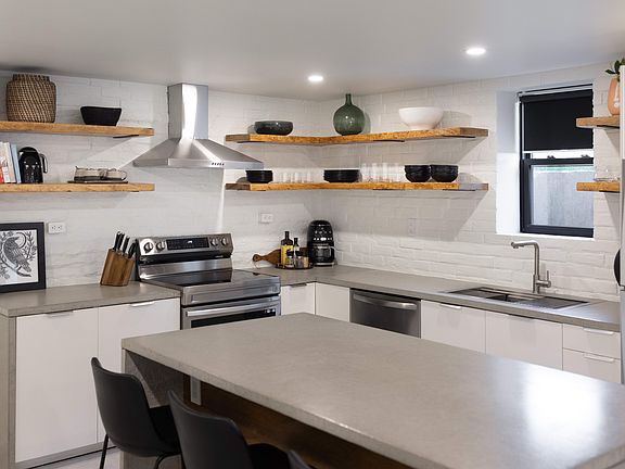 If you are searching for a truly modern living space, look no further than this professionally designed industrial style apartment located in the heart of Wortley Village. This stunning two-bedroom, two-bathroom unit has been extensively renovated and is ready for its first tenancy. This unique apartment boasts just over 1350 square feet of living space with high ceilings and an open concept layout - perfect for modern living and entertaining. The apartment features Italian-imported ultra large format porcelain tiles continuously on all floors. Every inch of the floor is heated throughout and is self-controlled and programmable to your desired setting. Exposed brick walls and floating hand-crafted wooden kitchen shelves add to the wow factor. New windows allow plenty of natural light into the space. Double and quadruple wide closets in both bedrooms allow for abundant storage. Full in-suite laundry room, walk-in pantry and secondary coat room also provide more convenience for living. The designer kitchen is a chef's dream featuring high gloss cabinetry (all with soft-shut technology), brand new stainless-steel appliances (fridge, stove & dishwasher), center eat-on island and a huge 30" stainless steel sink with sleek pull-out faucet. All countertops are uniquely designed in custom concrete. Kitchen also comes with a convenient built-in pantry with custom wooden shelving. The ultra-contemporary bathrooms feature floating vanities with storage, pop-up drains and contemporary faucets. The walk-in showers are tiled in white subway tiles, with built-in shelving spaces and rolling glass panels. The bathrooms also feature one-piece eco-friendly dual flush toilets with Slow-shut seats. Other features include: - Continuous ultra large format tiled floors - Heated floors throughout - Recessed LED lights throughout - In suite full-sized front-loading washer and dryer - All brand-new stainless appliances - Tons of exposed brick - All closets are self-illuminating when opened - Black out roller blinds on all windows - Prewired for cable and internet - Free private parking spots for 2 vehicles - Wi-fi Voice activated bedroom light dimmers - Air conditioning with programmable thermostat - Private outdoor patio space with string lit ceiling The property is located at 119 Elmwood Avenue and is steps away from cafes, restaurants, shops, grocery store and many other amenities. Rent is $2600/month plus personal hydro. Two free designated parking spaces are included in the monthly rent. This is an unfurnished apartment and furniture in photos are for staging purposes only. This apartment has been renovated and looked after with extraordinary care - individuals who intend to do the same need only apply. Tenants are expected to sign a one year lease and are expected to pay first and last month's rent. No smokers or pets please. Due to a severe asthmatic allergy to pets, pets can not be allowed in the apartment. Please do not apply if you have a pet or intend or getting a pet. Landlord lives close to the apartment and is active in maintaining the property. For more information, or to schedule a private viewing appointment, please call or text Jamie.