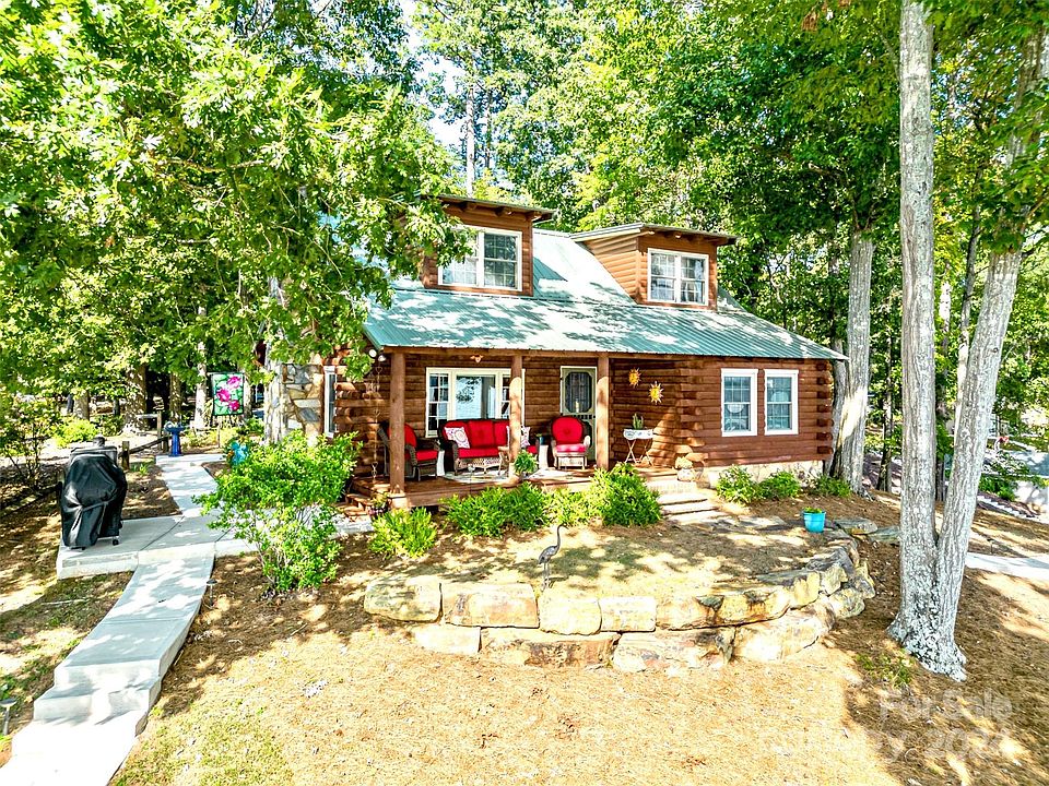 SOUGHT AFTER MILLION DOLLAR VIEWS!! Enjoy the widest part of Lake Tillery (main channel), with approximately 200' of shoreline. A true log cabin (circa 1980) with a beautiful stone fireplace, cathedral ceilings in the living area, and slate floors. Outside, you have a barrel roof boathouse with a refurbished sundeck on top. You also have a boat dock for fishing & swimming, fire pit area overlooking the lake, and a she-shed on the back side for hobbies, storage, etc. Inside, you'll love having a newly remodeled main level bathroom, main level bedroom, laundry, and spacious kitchen with quartz countertops. Upstairs, you'll find a private oasis that includes a bedroom, cozy den, and 1/2 bath. No detail was overlooked on this stunning property - incredible craftsmanship that would cost a fortune to build today. Meticulously maintained, updated, and loved - all the work done for you. This is a must-see.