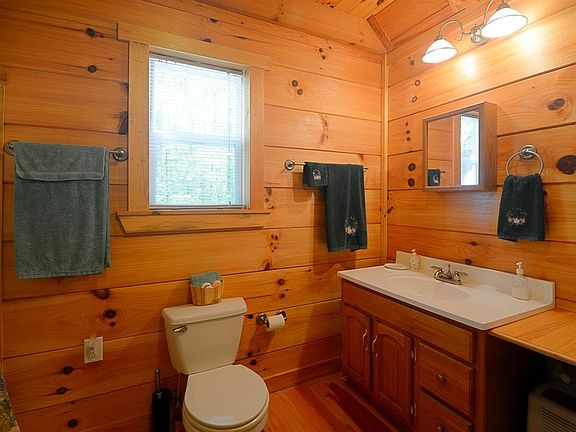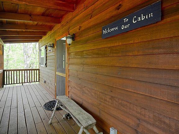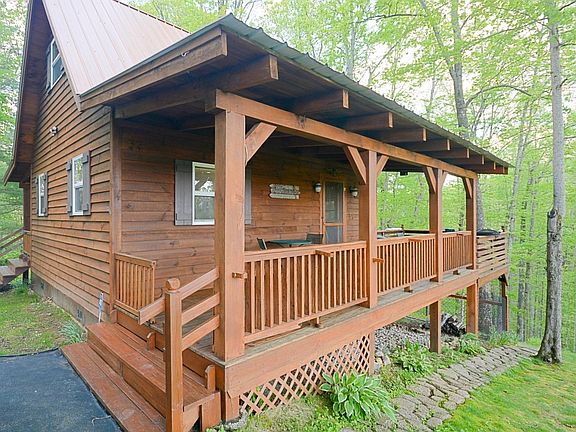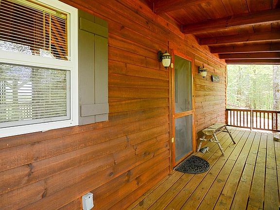 You're going to love this jewel of a cabin nestled in the trees. With large porches and a wall of windows, letting you enjoy nature, inside & out. The cathedral ceilings make it feel open and airy, while the warm decor makes it feel like home. This would make a great 1st time or vacation home. All furnishings and appliances convey with home.