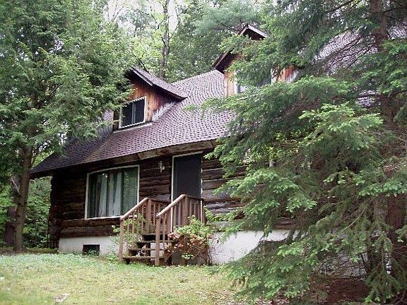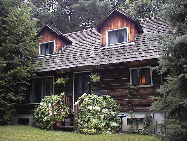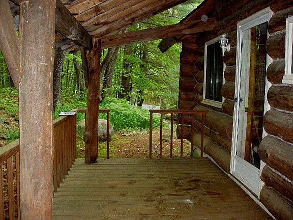 This home was constructed in 1979 from the native trees harvested from the lush 1.3 acre woodland property in the Town of Lake George. The property is located just a mile from the shores of the "Queen of American Lakes", in the northern quadrant of the town. The driveway approaches the home under a canopy of oak, maple, hemlock and pine arbors which carefully guard the yard. A gradual, natural path leads to a fabulous covered porch which stretches the entire length of the home and transitions into an open deck across the western end of the house. This deck provides an extremely private venue for observing the activities of nature in your "back yard". If you listen carefully you may hear the sounds from the babbling brook which is a portion of the rear boundary of the property. Upon entering this home you are greeted with the sight of hardwood floors in all major living rooms. Native slate provides easy clean-up in the kitchen while the baths feature quarry tile and slate. The country kitchen is designed to be efficient and versatile with a double, stainless steel sink and gas stove. The dining area is magnificent as it provides for the open floor plan feeling and will accommodate your best dining or picnic table. The large living room has a bow window facing south. A choice you will have to make is whether to use the "back room" as a bedroom or den or whatever you need. One of the most enticing features of this great home is the private balconies which belong to each of the two bedrooms on the second floor. These "hideaways" provide sanctuary for those cherished moments of relaxation and rejuvenation. For those who are familiar with the Lake George Region and the Adirondacks no explanation of the quality of life and activities available is necessary. For those who would like to join in this experience we welcome you to stop on by for a visit! It is addicting!