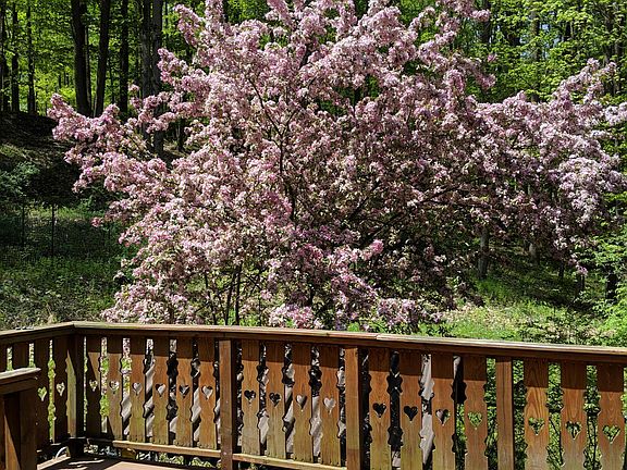 COZY UPDATED 4 BR, 2 BATH HOME, WITH CEDAR SIDING, LARGE OPEN GREAT ROOM WITH FIREPLACE -KITCHEN/DINING AREA WITH CENTER ISLAND, LOTS OF BEAUTIFUL WOOD WALLS FOR THE RUSTIC LOOK. FINISHED LOWER LEVEL, LARGE PATIO, SCREENED IN DECK AND PRIVATE SETTING TO ENJOY THE WILDLIFE, ''WHAT A GREAT SETTING!! THIS HOME IS A MUST SEE!!