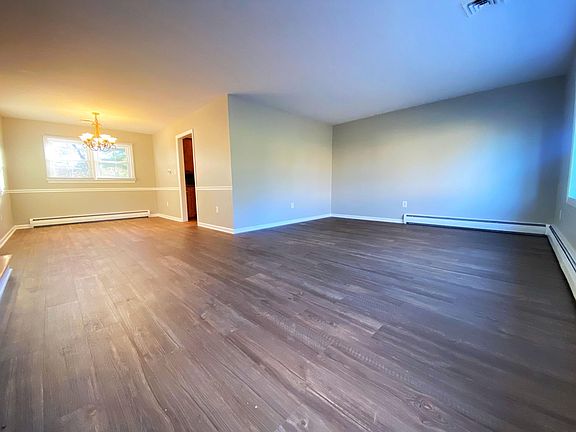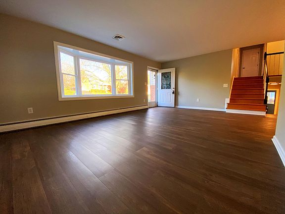 This tri-level home in an established neighborhood has just received a thorough update and is ready for new occupants! Front door opens to spacious, bright living level with living room, dining room combo and kitchen on main floor. Hardwood throughout the living room which features bay window overlooking front of the house, and continues through the dining area that features handsome chair railing and overlooks rear of the home. Kitchen has a cozy, rustic feel but leaves nothing to be desired. Lots of natural wood cabinets with new counter tops, new stainless steel stove, fridge and dishwasher and dual basin sink. Kitchen has room for small casual dining setting or kitchen island if desired. Kitchen walks out to garage and back deck. Head up the half flight of stairs to the sleeping quarters and you'll find the same handsome hardwoods. Secondary bedrooms are on the left side of the hall and both are accommodating and feature ceiling fans and full size closets. Off the right side of the hall you'll first find a handsome, fully updated full bath with new laminate flooring, lighting, new tub with tiled showered surround and dual sink vanity with lots of storage as well as a full linen closet. And on the back right you'll find the spacious master bedroom with ceiling fan and larger closet as well as attached master bath with new step in tile shower surround, ceramic flooring and new vanity and lighting. Heading down to the basement you'll find a very large den/family room with new laminate flooring, ceiling fans and brick hearth gas log fireplace. Also downstairs you'll find a great laundry room (tenant provides their own washer and dryer) an updated half bath and utility room that walks out to back of house. Garage is oversized one car with one bay and additional space for storage. Worktop space with cabinet storage space in garage as well as small storage or shop closet area. Home offers central air conditioning and central, multi zone gas, hot water heat. House is on a very spacious lot with lots of back yard space and back deck for outdoor dining. Tenants pay their own gas, electric and water at this location and are responsible for their own lawn care. This is strictly a non-smoking, no-pets property. Call Property Management of Virginia with your interest! 12 Month Lease