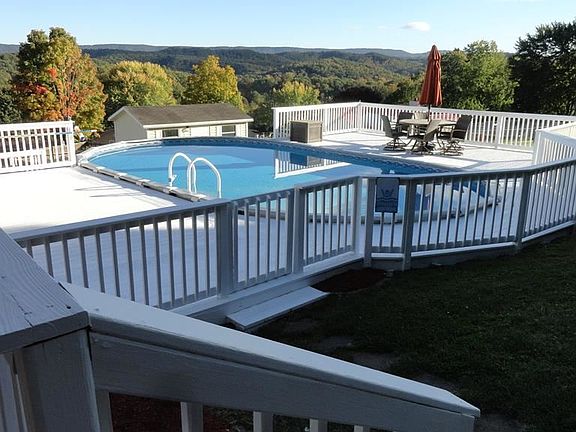 This exquisitely designed home is a must to see! You'll have your own private estate with a luxurious heated swimming pool surrounded by a lg. deck& view of our gorgeous WV mountains. Home features 5 bedrooms, 31/2 baths, oak kitchen cabinets, & xlg pantry. Living room has shiplap ceilings & stone fireplace w/ a wood burning buck stove insert. Lg. foyer, kit. & Laundry room has ceramic tile. A 24' x23'4 sunroom that has a xlg hottub, lots of windows. Upstairs the lg.master bdrm w /walk-in shower