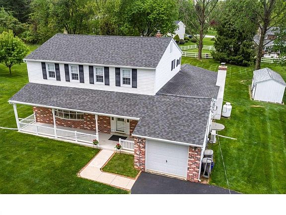 A perfect place to call "HOME"---an open lay-out house with so many upgrades and enhancements! PLUS approx. half-acre of flat, grassy yards PLUS the sought-after "Marchwood" community PLUS Downingtown East Schools! Ideal for recreation, entertaining, and just quiet everyday living! A welcoming Country Porch with wood columns & vinyl railings lines the entire front & frames the beautiful brick exterior. Into the spacious Reception Foyer w/polished ceramic tiled floors and turned staircase, which opens into the Living Rm replete w/gleaming hardwood flrs and an oversized bumped-out bay window. The hardwoods continue into the elegant Dining Rm w/chair rail millwork, crown molding and decorative wood columns, plus windows overlooking the quiet yards. The Eat-in Kitchen features Corian-trimmed counters; inlaid wood cabinetry; large center island; pantry; a double stainless steel sink; built-in microwave & flat top stove; ceiling fan & extra recessed lights; eat-in space; and doors to the Laundry/Mudrm which leads out to the Patio. The Family Rm w/NEW paint & carpet was designed and built as an oversized room extending back far enough to include an area for office/study. It is a sun-filled room with three walls of windows plus sliders out to the Patio, and it showcases a gorgeous mantled propane fireplace with brick accents and brick hearth. Also on this floor: Powder Rm, extra closets, inside access to the Garage w/electronic opener. The stairs & hallway have NEW carpet, and several rooms have NEW paint and NEW 6-panel wood doors & trim. 4 Bedrooms total! The Master Suite includes the Bedrm with ceiling fan; dual sets of closets; Full Bath redesigned with hand-tiled shower, long vanity sink, tile flrs. Three more Bedrms--all with ample closets & ceiling fans--and a hall Full Bath w/shower/tub, NEW vanity sink and toilet. Outside the large Patio with soffited ceiling (w/recessed lights & ceiling fan) provides a wonderful space for entertaining or just enjoying your tree-lined, grassy & level back yard. Huge 10x25 Shed with even more storage! So much more: dual-zoned for heat and AC (NEW unit in 2014); NEW in 2005: roof, gutters, and most interior windows; 2016 chimney cleaned & new liner; newly sealed driveway with multi-car parking; generator hook-up; security system. A wonderful community and close to major routes/PA Turnpike/trains, and also parks/amazing dining and shopping/recreation centers & fields.