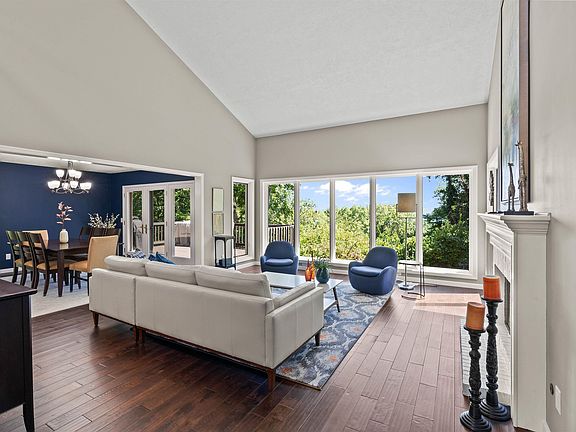 This incredible home combines the privacy of a tree lined lane with breathtaking Mississippi River views. Large windows and the open floor plan showcase the views and surrounding timber. 4 bedrooms, 4 bath, walkout basement with elaborate wet bar & family room, two garages, and screened porch. This home is immaculate!