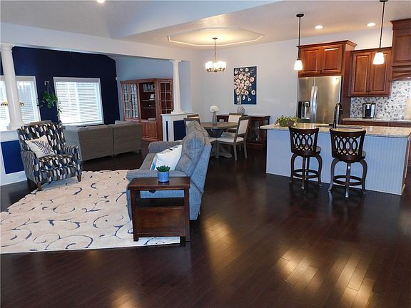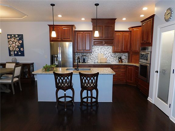 Remarks: Shows Great - New Build 2021, Nice Low Condo Taxes, Backs to Pond & Open Side Easement - 1665 SqFt, 3 BD,2 Full Baths, Nice Open Floor Plan, Great Rm, Cathedral Ceiling, Recessed Lights, Stone Gas FPLC & Solid Hardwood Floors - Kitchen with 9' Ceiling, 36" Cherry Cabinets, Grey/White Granite Counters, Pantry Closet with Cool Glass Door, Built in Stove & Microwave, Electric Cooktop & Lighted Hood Fan, All Appliances Included, Big Island & Breakfast Bar, Recessed & Pendent Lighting, Roomy Dining Area, Big Back Sun Room, Cathedral Ceiling, Overlooks Pond, Door to Vinyl Deck & Railings, Stairs Down, Nicely Landscaped, Office or BDRM 3 with Closet and View of Pond, Main BD, Big Walk in Closet, Sharp En Suite Bath, Tile Floor, Tall Vanity, Granite Counters, Stylish Tiled Walk in Shower & Glass Door, 2nd BDRM in Front, Full Bath, Tile Floor, Granite Counter, 1st Floor Laundry, Full 12 Course Bsmt, Egress Window, Vinyl & Stone Exterior, HOA $230/month Covers Ext Maint, Snow Removal, Roof & Garbage, Again those low taxes a plus, No Delayed Negotiations, Come See!