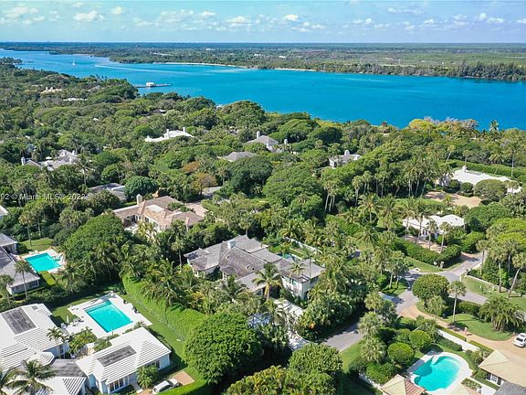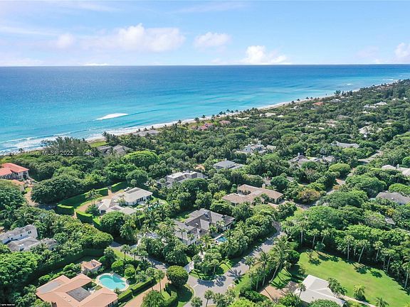 An eclectic, newly renovated family home rebuilt in the tradition of Florida architecture with an appreciation of Caribbean style is available for purchase in the exclusive Jupiter Island community. This perfect retreat, curated by Lori Deeds of Kemble Interiors, provides a marvelous array of colors and textures from Morocco, the Dominican Republic, India, and the African continent, yielding unexpected design elements with surprising communal harmony. The solid aluminum front doors open to an entryway with soaring cypress ceilings and customed-dyed tile flooring imported from India. As you enter the great room, your eyes are drawn upward to the stunning four copper chandeliers.