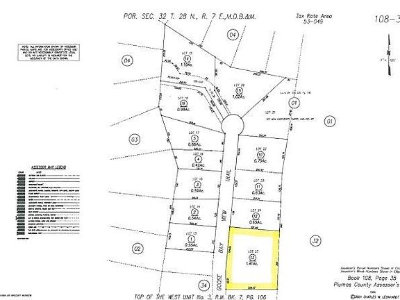 SELLER FINANCING AVAILABLE WITH SUFFICIENT DOWN PAYMENT. Extra large Lake Almanor West vacant lot (1.41 acres). Position a home high at the rear of this lot for a Goose Bay view. Very private setting. Peaceful. Potential for wide scenic views of mountains and Goose Bay. Lake Almanor amenities include 9-hole golf course, clubhouse, tennis, boat launching and park like recreation area with sandy beach swim area.