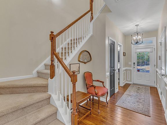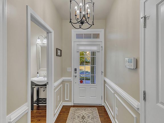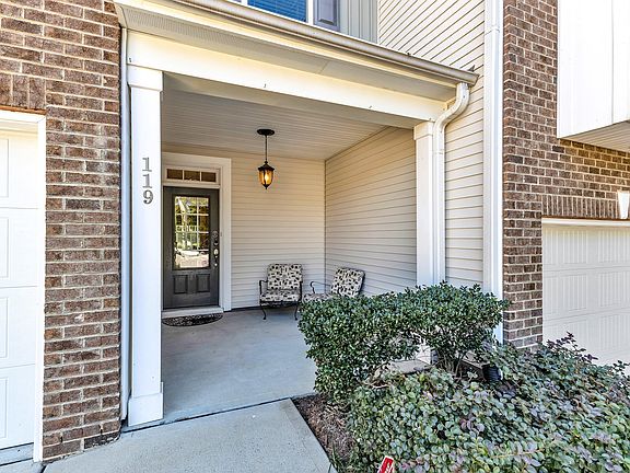 Eclectically charming townhome located in the coveted community of Stonewater in West Cary! This 3 bedroom 2.5 bathroom West-Facing townhome sits on a cul-de-sac lot with the perfect view of greenery. 1st floor boasts 9 foot ceilings, espresso stained engineered hardwood flooring, open concept kitchen with white cabinets, stainless steel appliances, gas range, granite countertops, expansive kitchen island and walk in pantry. Entertain guests in the cozy ornate trimmed living area and relax on the screened porch. At times, you can hear the gentle waterfall from the nearby creek while sitting in the screened rear porch. Head up stairs to find 3 bedrooms and 2nd floor laundry room. Primary bedroom is oversized with large walk in closet and plenty of space in the primary bathroom. Take the edge off in the expansive tub and enjoy your own sink with the dual vanity. Single car garage has good space for your vehicle and bonus storage with built-in shelves. The community of Stonewater features a private community pool, nearby walking trails, playground and is within a few minutes drive to RTP. This prime location makes this townhome THE one you have been looking for!
