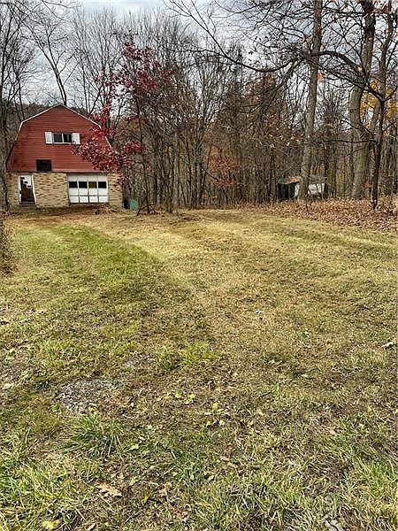 2.14 wooded acres with 3-story garage/shed with electricity. Ideal for someone looking for private storage, landscape equipment, garage, boat parking, or workroom/office. Garage being sold as-is with contents (tools, motorcycle parts, miscellaneous items).