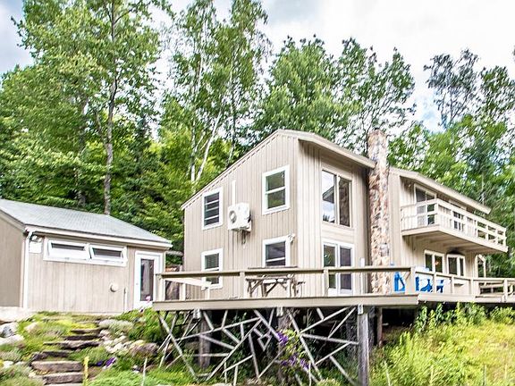 Serene mountain escape set on 6 quiet acres one mile from Jackson Village. Surrounded by lush gardens and a tranquil brook-fed pond this contemporary Jackson home strikes the perfect balance between refined elegance and rustic comfort. Two bedrooms, two baths, large south-facing windows to welcome in the sunlight, hardwood floors, a warm woodstove with a brick hearth, ample closet space, a sauna and extra room for guests or hobbies. Expansive decks and terraced gardens invite you outside and create a true outdoor retreat.