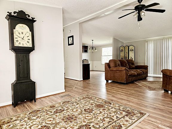 2001 manufactured home on a permanent foundation. Open floor plan, with 3 bedrooms and 2 bathrooms. The kitchen has lots of cabinets and counterspace with a pretty custom back splash, and room for an eat in table or island. Has a formal dining room with built in 'bar'. The real wood burning fireplace in the living room makes for a warm and inviting space. Split bedrooms with the primary having a full size walk in shower and another full size tub shower combination, double sink vanity and huge walk in closet. Separate laundry room with cabinets. Level front yard with wooded slope off the back yard. 5 minute drive to downtown Sweetwater and less than 10 minute drive to I-75. Ready to go FHA - appraisal already in place.