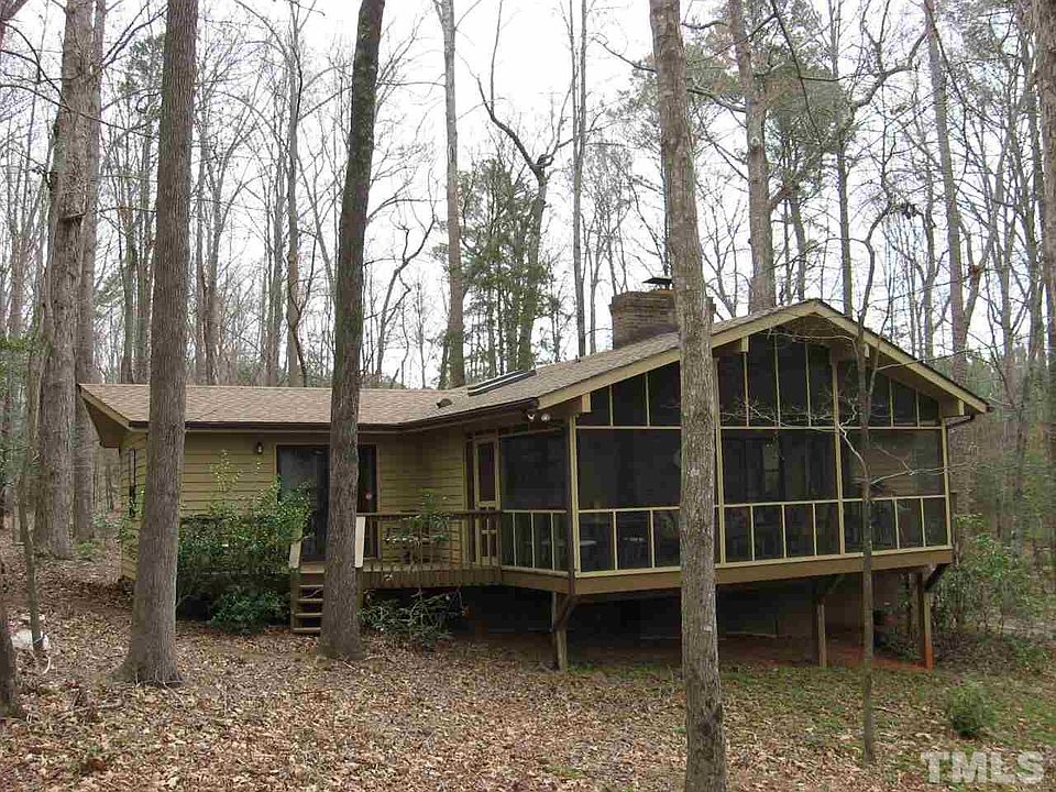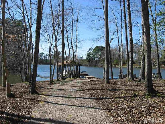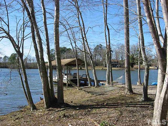 Beautiful well maintained 3 bed room Lake Gaston home on secluded cul-de-sac lot with lots of water front on quiet cove. The flat lot has a gentle slope to a sandy beach, private pier and covered boat slip with boat lift. Great views from the house, large screen porch, covered front porch, 2 decks off lake side bedrooms, and dock. The property is located on the south side of the lake (Southwest quadrant) with easy access to Wake Forest, Raleigh, RTP, and Durham.