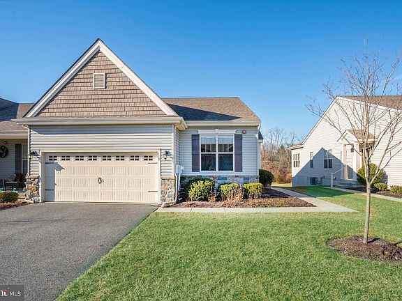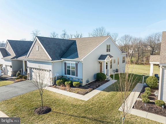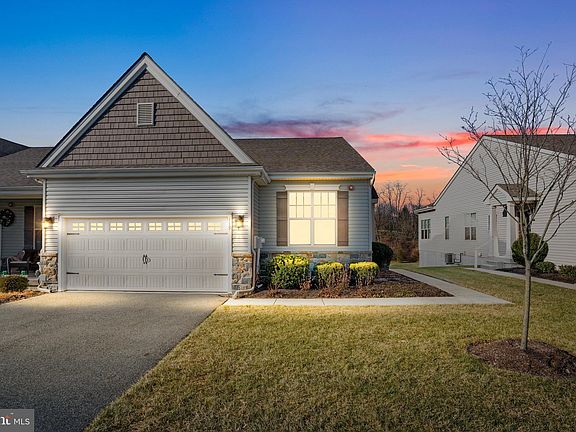 Welcome home to Harlow Pointe! This end of row home is loaded with extras in the Verbena floor plan by Wilkinson and is the ultimate in low-maintenance and comfort, boasting private views at the back from the Owner's bedroom, Sunroom and rear deck. Located just over the DE line, convenient to tax-free shopping, recreation and transportation, this delightful community of Harlow Pointe offers a fantastic location and a low-maintenance lifestyle. The main floor is finished with hardwood flooring throughout the foyer, dining room, family room and sunroom, with carpeted bedrooms & tiled bathrooms. The kitchen is beautifully appointed with cherry cabinetry, granite countertops and an open plan with adjacent family room and sunroom that leads to a rear deck, ideal for entertaining. Practically speaking, this plan boasts ideal storage with a large utility closet/pantry conveniently located on the first floor and many walk-in bedroom closets! The garage has built in shelving and the unfinished basement has added electrical for extra light and potential for future finishing including a walk-out access to the rear yard. This home has been meticulously cared for and gently lived in so it's almost like building new!