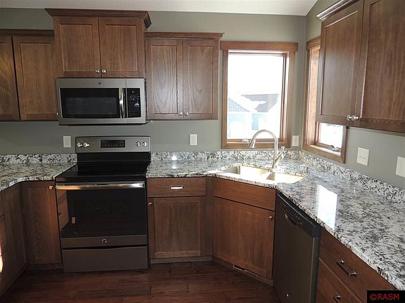 Ready to move into brand new 3 bd, 2 bth, walkout rambler with approximately 1700 sq ft on the main floor and a 3 car garage. This home is located in a newer subdivision Eagle Ridge in Eagle Lake. Large entry open floor plan, kitchen, dining and living room has engineered hardwood flooring. The kitchen has granite countertops, Slate grey refrigerator, range, dishwasher, and microwave. Also in the kitchen is a pantry and oak cabinets. Off the kitchen is a great mud/ laundryroom, built in lockers, and a separate closet. The living room and dining room have vaulted ceilings. The master bedroom has a recessed ceiling, carpet, walk in closet, cultured marble double sinks, and walk in tile shower. Located two blocks from city park and walking trail.