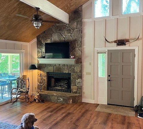 Fully remodeled mountain home with deeded easement to Lake Glenville and located so close to everywhere you want to go. Just 5 miles to Cashiers, a quaint mountain village, for shopping, dining and entertainment options. Just so many custom features to this home, it is hard to include them all. If you'd love to have a home with an existing 20,000 gallon Koi pond stocked with 48 gorgeous koi, including pump house with filter system and aerators; with back up solar system; just move in and it is ready to enjoy. If you don't know how to care for them, it's easy and we'll show you. The main upstairs portion of the house is 1200 SF with 1 BR, an enormous bathroom including a wet room with double slipper tub and shower under a 4' x 6' window looking out into the tree tops. The bathroom features a beautiful electric fireplace, as does the bedroom. Set the timer and drift off to sleep. There is also a half bath including a laundry closet. The bedroom also features a super large closet with separate mirrored door area fully shelved out for folded clothing items. The closet is accessed through a beautiful wood barn door. There is a home office also accessed through matching barn door with a built in countertop height desk under two windows overlooking the backyard. There is an enormous covered back deck overlooking the backyard and koi pond that is 24' x 24'. A wonderful place to relax. The area; WOW! Just looking at Lake Glenville each morning as we walk along Lakeside Circle Drive around the edge of the lake with our dog and note how it looks different daily based on atmospheric conditions that morning, is just amazing. Beautiful in the summer and breathtaking in the fall with the outstanding display of color.