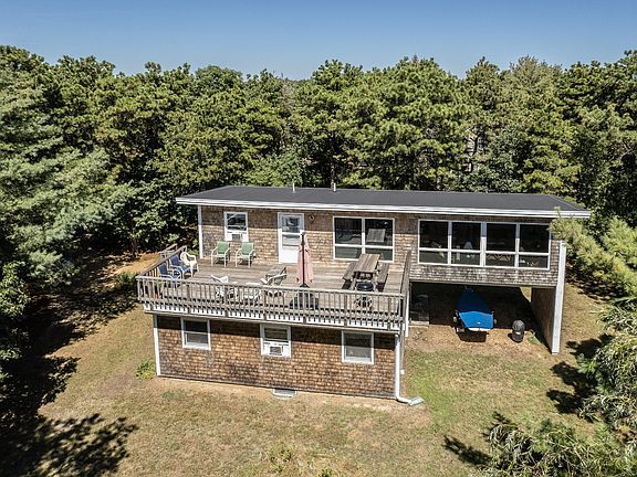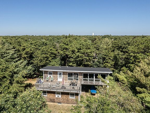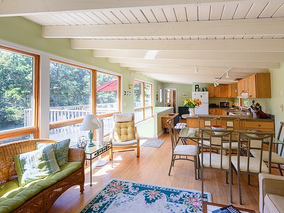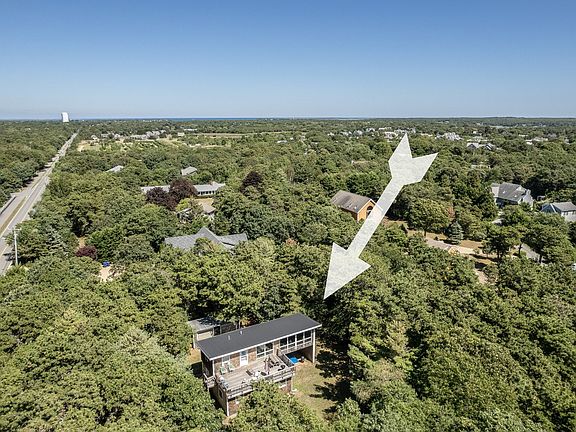 Welcome to another epic Vineyard summer day. Wake up to the sounds of birds in the canopy of the trees, walk down to the Katama Airfield for a hearty breakfast and to watch the prop planes taxi in and out, then plan your day .... Bike into town for shopping and lunch (2 miles) or head to South Beach and surf the waves (3/4 mile), play volleyball in the very private yard with the kids, or read a book in the secluded shade - so many options. This extremely desirable Katama location is ready to take shape. With almost an acre of land and a 4-bedroom septic, there are endless possibilities for renovation and expansion. The existing house is a classic upside down with a great upper deck off the kitchen. The whitewashed cathedral wood ceiling in the upstairs living area feels reminiscent of the simple beach house. Plenty of rooms for your friends downstairs with a private bedroom and bath upstairs for you. Enjoy the house while planning your dream transformation, or rent so others can spend a week making memories. This lot can have 5 bedrooms according to the Health Dept of Edgartown.