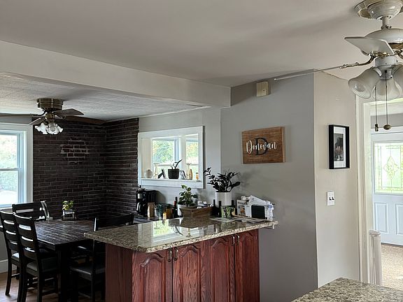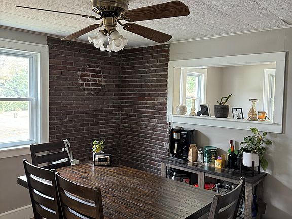 This inviting rental home offers the perfect mix of comfort, practicality, and style. The spacious first floor features an open floor plan with abundant natural light, creating an ideal space for entertaining or everyday living. The large kitchen includes a center island, breakfast bar, and ample cabinetry for all your cooking needs. Guests can gather in the cozy living room, dine in the exposed-brick dining area, or relax in the sunroom with vaulted ceilings. The first-floor laundry and bath add to the home's convenience, and the oversized garage with electricity and generous storage makes an excellent workshop or gardening space. Upstairs, you'll find three bedrooms and a full bath, providing plenty of space for restful nights and privacy. Outdoors, the covered front porch offers a relaxing spot for morning coffee, and the deck overlooking a private backyard is perfect for enjoying the outdoors. Located within walking distance of a local ballpark and new pickleball courts, and just moments from a brand-new school, this home provides access to recreation, education, and community. Lease Term: 1-year lease Payments Due at Signing: First month's rent and a security deposit equal to one month's rent. Smoking: No smoking permitted on the property. Pets: No pets allowed. Tenant Responsibilities: Lawn Care & Snow Removal: Tenant is responsible for mowing the lawn and clearing the driveway during winter months. A mower and snowblower will be provided for tenant use. Utilities: Tenant is responsible for water and gas & electric.