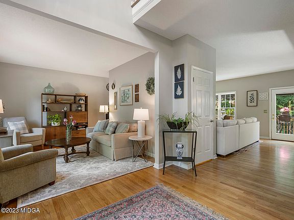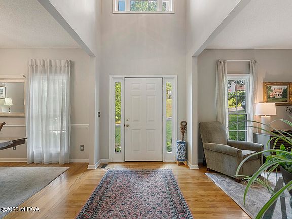 Welcome to this exceptional North Macon residence showcasing unparalleled indoor and outdoor living with remarkable elements throughout the home. This one-of-a-kind beauty offers five bedrooms and three and a half baths, a rare find in this price point. Upon entry, you will be greeted by a stunning two-story foyer and a delightful open floor plan. Moving into the elegant formal living area, the room exudes elegance with natural sunlight and charm, while the dining room is a perfect blend of sophistication and luxury. You will love cooking in this kitchen-a true entertainer's delight that boasts stainless appliances, breakfast island seating, and beautiful cabinetry all open to a large breakfast area. The living room is another wonderful surprise with a wall of windows overlooking the backyard with a beautiful brick fireplace. This main level offers stylish chandeliers and lighting, adding an extra touch of opulence. The primary suite is nothing short of luxurious, featuring a sitting area and en suite spa-like bathroom with soaking bathtub, a spacious shower and attached walk-in closet. You will find three more roomy bedroom suites and a full bathroom to finish the second floor. On the lower level you will find the home gym, music room lounge and bedroom area that would make a great mother-in-law or teenage suite, playroom or office with full bathroom. Enjoy direct access to the lower level's covered patio, completed with a second outdoor sitting area. Come experience the beauty and fabulous stylish interiors and charming outdoor spaces of this perfectly designed and constructed home.