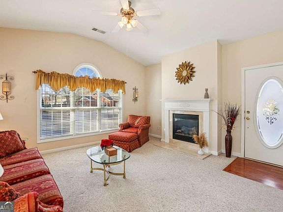 *** Price reduction. *** This is your rare chance to own a 2 bedroom / 2 bathroom ranch home in the most private / secluded spot in Buford's most sought after "Active 55+ Community", Friendship Corners! This beautifully constructed 4-sided brick ranch(condominium ownership)offers stepless, one-level living on a private cul-de-sac lot with side-driveway access to extended length, two-car garage parking. The garage features limo-depth parking, ample storage space on the sides and along the rear wall & a closet on the far right that houses the gas water heater, expansion tank, etc. The garage door is weather insulated and belt-driven, making it much quieter than chain driven garage doors. The overhead garage door opener is 3 years old & includes a remote for programming "HomeLink" garage door opening software found in most vehicles. This home is extraordinarily well kept and features a lovely open floor plan offering a large family room, complete with vaulted ceilings. At the center of it all is a very pretty, glass front, gas fireplace that is operated by a light switch on the wall next to it. A beautifully designed and built wood mantel surrounds the fireplace, making for a picturesque holiday photo setting. A very low use and very pretty "eggshell" colored carpet covers the floor in the living room, the dining room, both bedrooms & both closets & the hallway leading to the two bedrooms. The kitchen features a generous amount of counter space, quality wood-stained cabinetry that provides more than ample storage, a large, two-sided stainless steel sink with new hose & faucet sprayer combo unit & an eat-in breakfast bar just above that. The floor immediately inside of the front door features a 5 foot x 5 foot area of hardwood flooring. The primary suite has very large double walk-in closets, ample square footage, a ceiling fan, and 10 foot ceilings, etc. The primary bathroom features an over-sized walk-in shower and a double vanity / double sink configuration with increased height cabinets & countertops. The secondary bedroom enjoys plenty of natural light through double-paned, double windows. The second bedroom also features a ceiling fan / light that is activated by a wall switch. The secondary bathroom is ideal and offers a double vanity sink-countertop space, along with a very nice shower/tub combo in white with a shower curtain. Both bathrooms have extended mirror coverage above the sinks, proper lighting & exhaust fan in the ceiling. The outdoor living space gets an A + as it is the perfect patio space to relax in, entertain friends, neighbors and guests. This patio space is available for furniture, rocking chairs, umbrellas, tables, raised gardens, potted plants, flowers, bushes, etc. The relaxing private patio area alone looks out onto a gardened and purposefully landscaped wooded forest that is lush & beautiful. These wooded areas that the home looks out onto are as peaceful as they are private! The monthly HOA fees cover water, dwelling maintenance, termite bond, landscaping / lawn service, reserve fund, trash, sewer, pool access to the community swimming pool. Come and see why so many people have shared in the same positive and immediate reaction upon learning of this community and its stunning building designs, location and value. It is also within close proximity of the City of Braselton, Mall of Georgia, Sugarloaf Mills, Historic Buford, Treetop Quest Gwinnett, Lake Lanier, North Georgia Premium Outlets, highly rated dining & shopping. ***The side-by-side washer and dryer units will convey with the property at closing.***