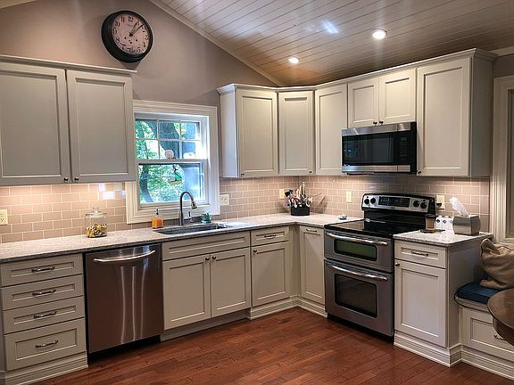 Exquisite 3BR/3BA home on professionally landscaped wooded cul-de-sac in popular Washington neighborhood! Open flr plan, generous room sizes, beautiful hardwood flrs, designer style kitchen, walk-in pantry, heated master BA flr, lrg WIC in master BR, room for potential 4th BR in lieu of formal living rm. Basement comes equipped w/kitchenette, accent wall, workout area or small office. 1-stall attached garage & separate 3-stall detached garage w/carriage doors & carport. Enjoy tranquil evenings in your private bkyd while relaxing on the deck. Over 3,000 sf of fin living space! Updates include: ('21) Chimney tuck pointed & sealed, water heater; ('19) Driveway, ('17) Kitchen & Water Softener; ('16) Master bath, Whole house generator w/transfer switch; ('15) New HVAC system, Basement remodel (including laundry room, bathroom, new electrical, kitchen, attached garage, & flooring; ('11) Pergola, brick paver walkway; ('10) Roof, Radon system, Septic System (inspected in '21). Appl's "as is".