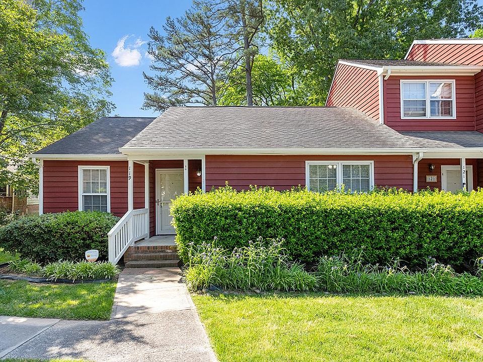 A little piece of heaven nestled in WOODCROFT neighborhood. Check out this unique townhouse with all the UPDATES!! Vaulted ceilings, large windows and natural light brighten the main living space. Family room w/ wood burning fireplace & laminate flooring throughout. Subway tile backsplash, granite countertops & selected color scheme add the perfect touch to this home's modern flair. Spacious first floor with owner's suite w/ WIC & additional bedroom w/ fully bath. Finished basement includes an additional owner's ensuite w/ WIC, 4th bedroom which could be used as an office. So much potential to make it your own. Community pool with additional fee & minutes to Southpoint mall, Duke, UNC and the American Tobacco Trail. Monthly and annual HOA fees. Assigned parking spaces & ample visitor parking. WELCOME HOME!