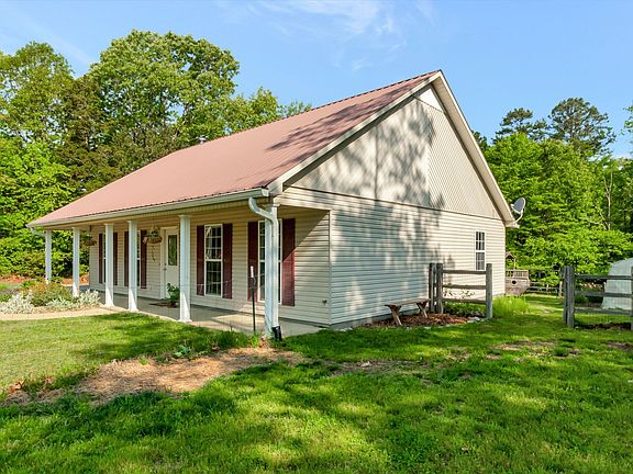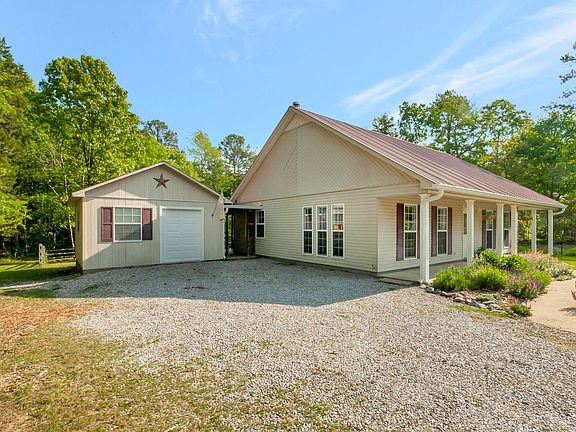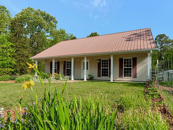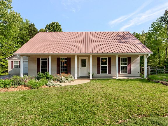 Lovingly-maintained, updated 3 BR, 2 BA, 1328 sq ft home nestled on 1.05 level, partially-wooded acres in a quiet, established neighborhood approximately 10 minutes from Hohenwald. Open floor plan, wood burning stove in living rm, solid wood farmhouse cabinets & butcher block countertops. Recent paint throughout, attached 16'x16' shop w/covered area behind for vehicle parking or storage. Separate laundry/mud room. Primary bedroom with 2 closets and private bath. Laminated floors in kitchen, living room, mud/laundry room, baths. Beautifully landscaped yard w/blueberries, fruit trees and flowing plants all spring and summer! Land beyond the back yard is wooded with nice walking trails. Gardener's dream w/green house, potting shed and beautiful flowering landscaping! Recent wood-burning stove to supplement central heat for lower heating bills. Home & shop on slab (no worries about crawl space maintenance). Covered porch off of kitchen leads to shop. Play set also included as-is with home.