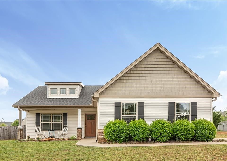 Welcome home to this Craftsman style three bedroom, two bath home that sits on a large corner lot in Sandy Springs Ridge! Walk into the open living room with vaulted ceilings, spacious kitchen which includes center island, pantry, and dining area. Appliances include refrigerator, new 3 drawer Bosch dishwasher, built-in microwave, and electric range/oven. Washer & Dryer are negotiable. Master bedroom features a tray ceiling, large walk-in closet, bathroom with double sinks, walk-in shower and garden tub. Two additional bedrooms, hall bathroom, laundry room, and two car attached garage. Enjoy entertaining outdoors in the screened-in porch and the above ground pool. Pool is only a year old with higher end filter system and stainless panel. USDA eligible for qualified buyers! Conveniently located, just minutes from Anderson, Clemson, and Interstate 85.