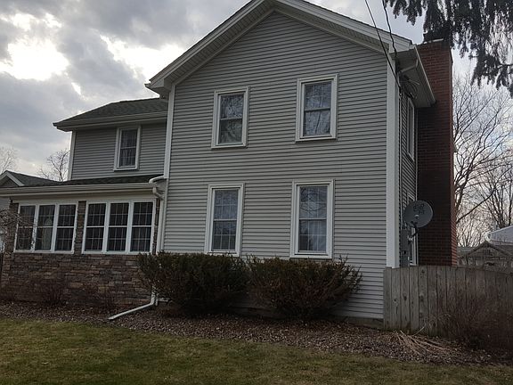 Welcome to this most awesome and totally updated home.This home has great curb appeal!.Cherry cabinets in huge country kitchen.Nice formal dining room perfect for entertaining.Sunny enclosed room perfect for plants or a quiet place to unwind.Large but cozy living room with breath taking fireplace.Large room off living room perfect for family room,den/office or inlaw area.Convenient first floor laundry.Updated electric and furnace.All newer windows throughout.Some hardwood floors and ceramic tile flooring.Updated beautifully are two full baths.This home sits on a lovely double lot and has a stamped concrete patio and newer stamped sidewalks.Oversized garage with a large workshop or perfect for a mancave.This is a beautiful home with loads of charm and ready to move right into now!