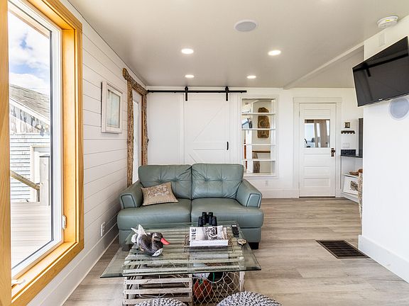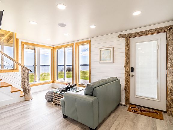 Pull up a chair on the wrap around deck that overlooks endless stretches of azure waters, as you watch fishing boats bobbing on the horizon and seabirds swooping low over the water. The salty breeze carries the soothing melody of crashing waves, and a carpet of soft grass leads you down to a sandy beach, inviting peaceful walks along the shore. Inside, cozy furnishings and nautical decor create a warm retreat, where the sound of stillness mingles with the distant call of seagulls. It's a place where time slows down, offering respite from the hustle and bustle of modern life amidst the timeless beauty of the ocean.