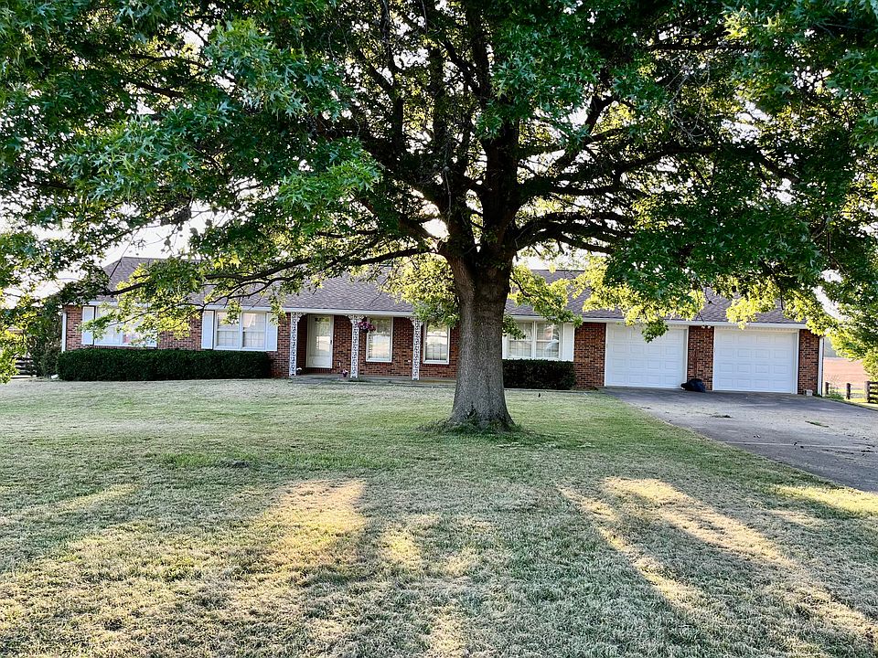 NO HOA, LOCATION, LOCATION, LOCATION, Ranch, 1.00 acre lot, All brick. What else could you ask for! Home features 3 good size bedrooms, 2.5 baths and a oversized 2 car garage. Full walk out basement for you to finish as you wish. Would make a great man cave or second den and guest bedroom. Outside you will find a pear tree and a carpathian walnut tree. Long living room gives you plenty of space for sectional couch and lots of room for entertaining. You can sit out on the front porch to enjoy the neighborhood or on the deck in the back with peonies already blooming in the yard.