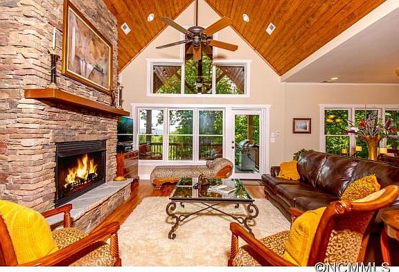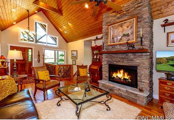 This newer custom home sits on 4 gorgeous lots w/ YR mountain view & your own trails. A home of this quality includes: cedar shake siding, HW floors, stone gas FP, vaulted wood ceilings, granite, SS appliances & 2 large decks. The top deck opens to the DR & GR providing for great entertaining. This home will surely appeal to the discerning buyer. Please see attachment for all features. Close to East Fork Gate and Clubhouse. CFPOA UAF $8,000
