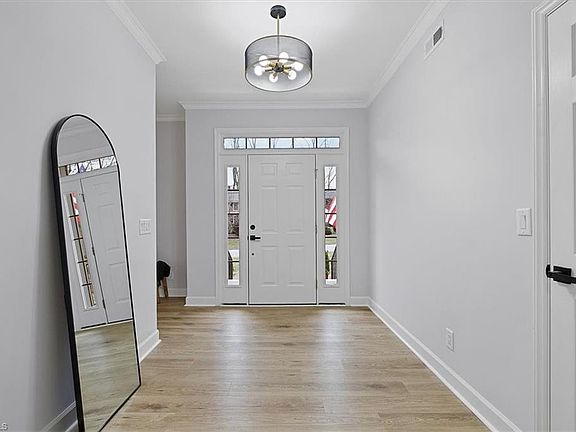 Beautifully renovated lake front home in Hamilton Lakes! Stroll down your large flat backyard to canoe or kayak right off your own newly built dock. All new flooring, new bathrooms with tile, new light fixtures, new interior and exterior doors, new interior and exterior paint on brick and new vinyl siding! Kitchen with new quartz countertops , stainless appliances and gorgeous backsplash. Main level has a bedroom with full bath. Second level has 2 additional bedrooms and primary bedroom. Basement features a bedroom, large recreation room and a multi-purpose room/gym. Newer roof, newer windows, new decks. So much extra attention to detail throughout. Super convenient location close to Starmount Country Club, shopping, restaurants and more.
